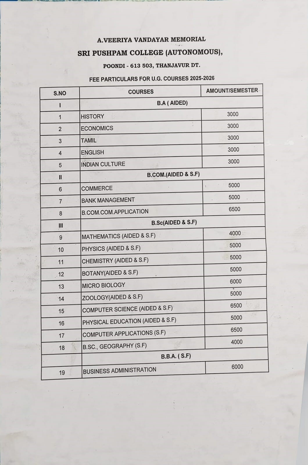 A. Veeriya Vandayar Memorial Sri Pushpam College (Autonomous), Poondi, Thanjavur(Dt.)